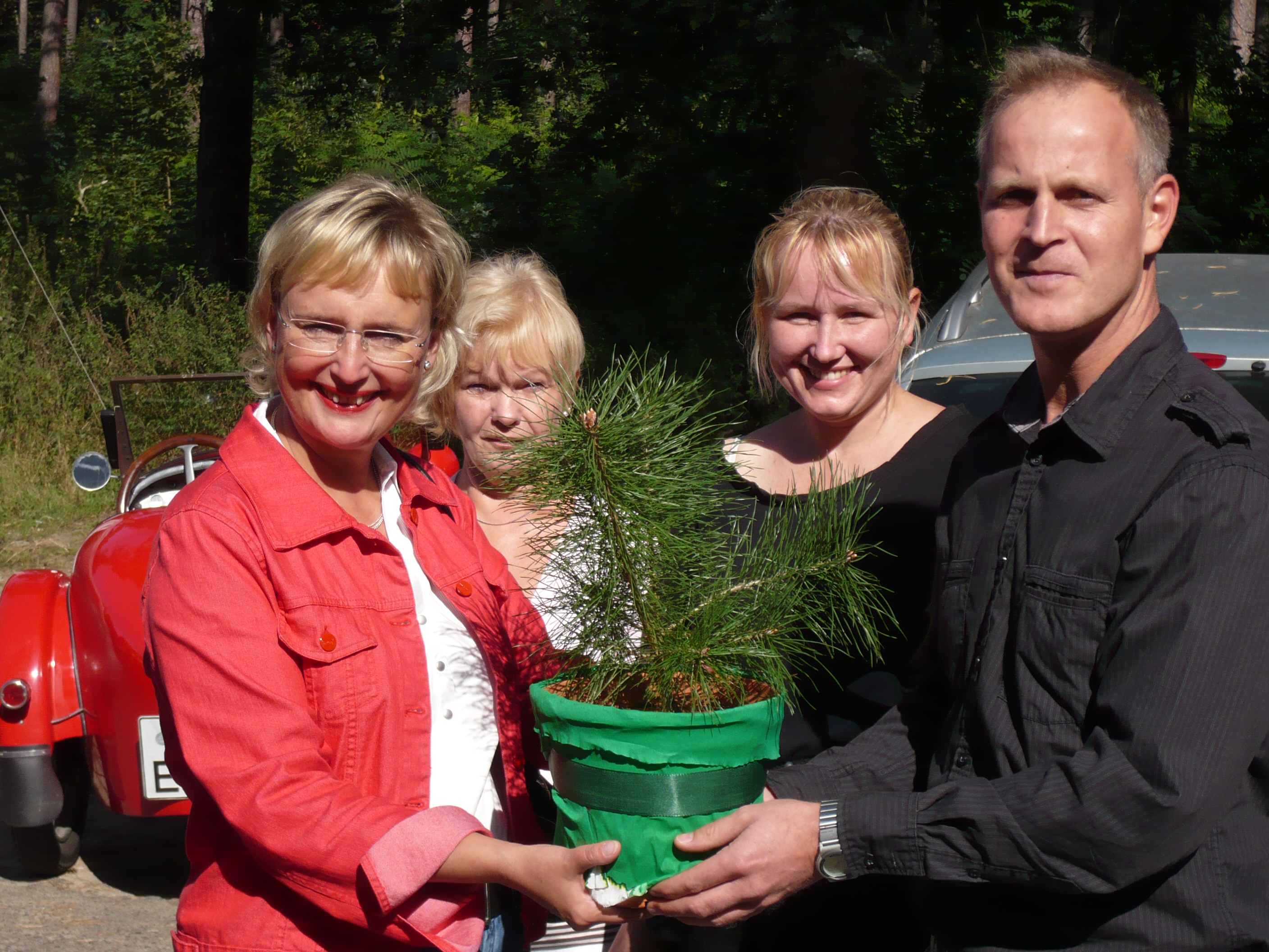 Dienstag, 22. September 2009 Zum dritten Mal veranstaltete die Bürgerinitiative Beethovenwäldchen am Samstag den 19.09.2009 bis in den Nachmittag hinein ein Straßenfest am Stahnsdorfer Beethovenwäldchen. Die Sonne strahlte vom Himmel und viele Interessierten bummelten die Beethovenstraße entlang und genossen einen bunten Vormittag, bei leckerem Gegrillten und Selbstgebackenen. Geboten wurde viel Bastel-, Schmink- und Sportspaß für die Kinder und reichlich Information für die Großen. Die Bürgerinitiative verfolgt weiterhin ihr Ziel den Beethovenwald für die Stahnsdorfer Bürger als Wald zu erhalten. Durch die Fällungen der Eigentümer im Mai wurde ein großer Teil des Waldes zerstört. Leider warten wir immer noch auf ein Signal der zuständigen Forstbehörde, die längst tätig sein sollte, um die Eigentümer des Waldes zur Beräumung des angerichteten Schadens und zur zwingenden Wiederaufforstung zu verpflichten. Die Gemeinde Stahnsdorf hat für das Wäldchen einen Grünordnungsplan mit Veränderungssperre beschlossen. Ein sehr unterstützenswertes neues Projekt ist die Ansiedlung eines Kinderspielplatzes im Straßenbereich der Friedensallee am Beethovenwald. Dies hat die Bürgerinitiative am Samstag noch einmal sehr deutlich gemacht. Der Bürgermeister der Gemeinde eröffnete das Fest am Morgen und im Laufe der Veranstaltung besuchten die Landtagskandidaten Sören Kosanke (SPD), Thomas Michel (GRÜNE), Klaus Jürgen Warnick (LINKE) und Gerhard Enser (CDU) sowie die Bundestagsabgeordnete Andrea Wicklein (SPD) das Fest und suchten das Gespräch mit den Bürgern. Die Bürgerinitiative Beethovenwäldchen überreichte allen Politikern ein Bäumchen als Symbol der Verbundenheit mit dem Wald und als Erinnerung an die politisch Aktiven sich in ihren neuen Positionen nach der Wahl für eine Erneuerung im Brandenburgischen Landeswaldgesetz einzusetzen. Denn nur fehlende Bestimmungen zum Schutz innerörtlicher Waldstücke gaben den Eigentümern im Beethovenwäldchen die Möglichkeit sanktionslos den Wald zu zerstören.
