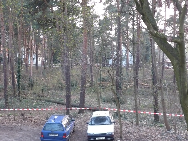 Weitere Bilder zur Donnerstag, 09. April 2009 Was lange befürchtet wurde (Weil noch keine Unterschutzstellung erreicht werden konnte), ist nun eingetroffen! Der Schock sitzt tief! Hier die an alle versandte Pressemeldung Ein Blick nach oben, geringschätziges Abnicken und schon fällt eine weitere Kiefer. Baum um Baum wird im Beethovenwald in Stahnsdorf seit Montag, 06.04.09, 9.00 Uhr früh umgelegt, obwohl der Vorentwurf des Flächennutzungsplans für diese Fläche Wald ausweist und es eine klare Mehrheit in der Gemeindevertretung zum Erhalt des Beethovenwaldes gab. Aber da gibt es einen auffälligen Zeitplan: Die Stahnsdorfer sind in Ferienstimmung doch der Bau-, Verkehr- und Umweltauschuss wird am 07. April noch einmal tagen. Und auf der Tagesordnung stehen zwei Beschlussvorlagen, die die Zukunft des Areals „Beethovenwald“ zentral betreffen: Für dieses Gebiet wird die Aufstellung eines eigenständigen Grünordnungsplanes vorgesehen, in der auch Fragen der Waldbewirtschaftung geregelt werden, in Verbindung mit einer Satzung über die Veränderungssperre für diesen Geltungsbereich. Genau diesen Zeitplan und Sachverhalt hat Reinhard Hoffmann, der Ehemann einer Besitzerin zweier Flurstücke im Wald im Auge, wenn er während der Vegetationsperiode aus der Mitte des Waldes heraus am letztmöglichen Tag im Eiltempo seither ca. 70 Bäume fällen lässt. Und dies unter dem Deckmantel der „Verkehrssicherung“ und „Waldbewirtschaftung“, bevor ihn womöglich ein Grünordnungplan mit Veränderungssperre definitiv daran hindern könnte, Baufenster herauszuschlagen. „Verkehrssicherung“, begrifflich ein Vorgang, der ohne bestehende Baumschutzsatzung erfahrungsgemäß willkürlich gedeutet wird, der irreparabel ist, also bei Missbrauch nicht kontrolliert werden kann. Bereits die Baumfällungen in der Saarstraße lehrten nachweislich, dass - um Kosten zu rechtfertigen – immer mehr gefällt wird als im Einzelnen notwendig gewesen wäre. Großspurig bietet Reinhard Hoffmann an, den Wald zu verkaufen, so dass Andere die Waldpflege übernehmen sollten. Das Kaufangebot der Bürgerinitiative nahm er jedoch nie an; denn obwohl es sich um Waldland handelt, sollen Baulandpreise erzielt werden. Immer an Hoffmanns Seite das Immobilienbüro Till & Richter, dem offensichtlich in Kleinmachnow die Grundstücke mit Baumbestand ausgehen. Warum aber fungiert ein Immobilienmakler als Sprecher des Eigentümers, wenn es doch nur um „Verkehrssicherungspflicht“ geht? Die vorgebliche „Waldbewirtschaftung“ täuscht, denn kaum sind die Bäume gefällt, wird den aufgeregten Nachbarn angeboten, sich am Holz zu bedienen. Teile der Eigentümergemeinschaft, angeführt von Reinhard Hoffmann, unterstützt von Till und Richter, können zum Schaden der Menschen und der Umwelt die Sozialbindung des Eigentums zum Wohl der Allgemeinheit nicht akzeptieren und auch nicht, dass in Stahnsdorfs Gemeindevertretung ein politischer Wille Einzug gehalten hat, der den Erhalt von Wald- und Grünflächen durch Grünordnungspläne und Veränderungssperren gewährleisten wird. Aber genau das muss von Ihnen verlangt werden und wir als Bürgerinitiative hoffen trotz der Ferienstimmung auf breite Unterstützung und Zustimmung im Ort. Bürgerinitiative Beethovenwäldchen ++++ Die Medien haben hierzu wie folgt berichtet: Bauausschuss kritisiert Fällungen (PNN - 09.04.09) Entsetzen über Fällungen (MAZ - 07.04.09) Entsetzen über plötzliche Baumfällungen (PNN - 07.04.09) Protestmails sind ausdrücklich erwünscht: damenelferrat@karneval-in-teltow.de <damenelferrat@karneval-in-teltow.de> leserpost@pnn.de leserpost@pnn.de kontakt@MAZonline.de kontakt@MAZonline.de info@teltower-stadtblatt.de info@teltower-stadtblatt.de Gemeinde@Stahnsdorf.de Gemeinde@Stahnsdorf.de Pressestelle@MLUV.Brandenburg.de Pressestelle@MLUV.Brandenburg.de service-redaktion@rbb-online.de service-redaktion@rbb-online.de Abt.RO@LUA.Brandenburg.de Abt.RO@LUA.Brandenburg.de Immobilien@DrRichterundTill.de Immobilien@DrRichterundTill.de Immobilien-Regional <info@immo-regio.net> (CDU Stahnsdorf ;-)) axel.koch@spd-stahnsdorf.de axel.koch@spd-stahnsdorf.de
