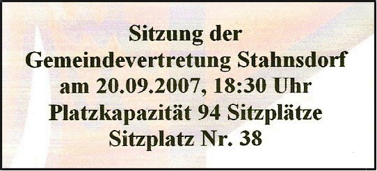 Am 20.09.2007 haben wir ganz aktiv gegen den Ausschluss der breiten Öffentlichkeit von der Gemeindevertretersitzung zur FNP- Vorentwurfsverabschiedung (sogenannte Platzkartensitzung - kein Scherz!) Protest gezeigt (siehe Bilder und unsere Pressemitteilung)